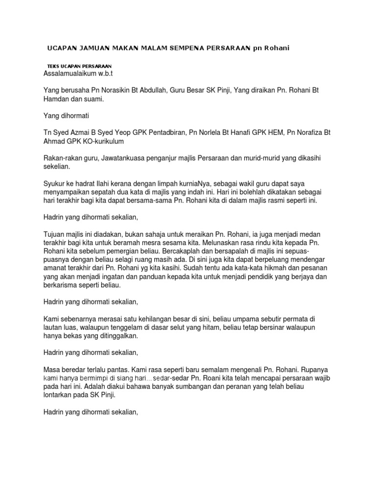 Ucapan Jamuan Makan Malam Sempena Persaraan Pdf